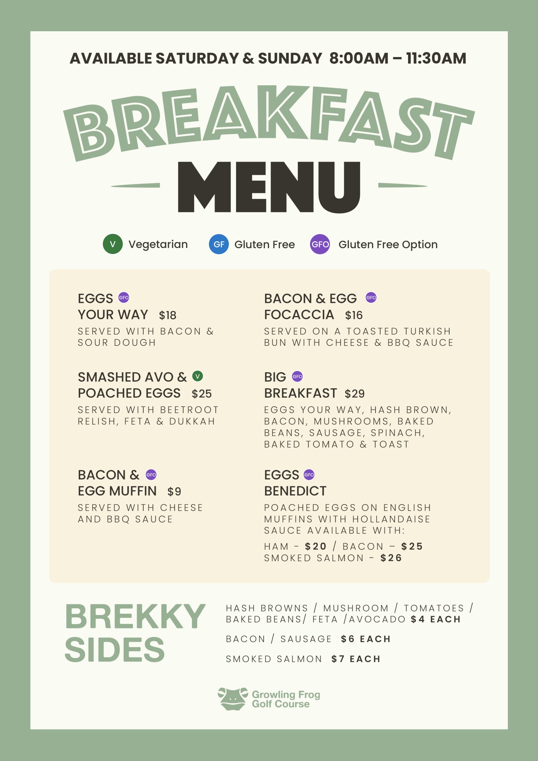 Breakfast Menu: 8am – 11:30am Weekends Only